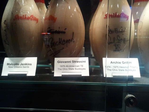 His story was so convincing to the fans in Charlotte that they invited him to alumni/supporter events and even used his name as a headline for a 2012 Final Four basketball game viewing party. But here’s the kicker, they also asked him to sign a bowling pin that was to be displayed at Strike City, which was the unofficial meet up spot for many fans in the city. The pin was then proudly displayed in between two OSU greats Malcolm Jenkins and Archie Griffin, who Stassini would have played alongside with.