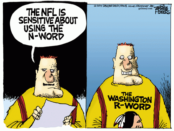 Including the Redskins name on that list of word no-no’s could mean going against big business and ruffling the feathers of a billion dollar owner and a valuable franchise to the league. While this league is predominantly African-American on the field the power brokers who reside in the owner’s box and have great influence outside of the sport happen to be white men with a lot of green.