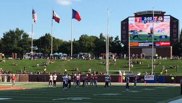 A new coach… a new quarterback… but the results remain the same as the Southern Methodist Mustangs fell to the Texas A&M Aggies 58-6 Saturday afternoon in front of a pro-Aggie crowd of 34,820 fans.