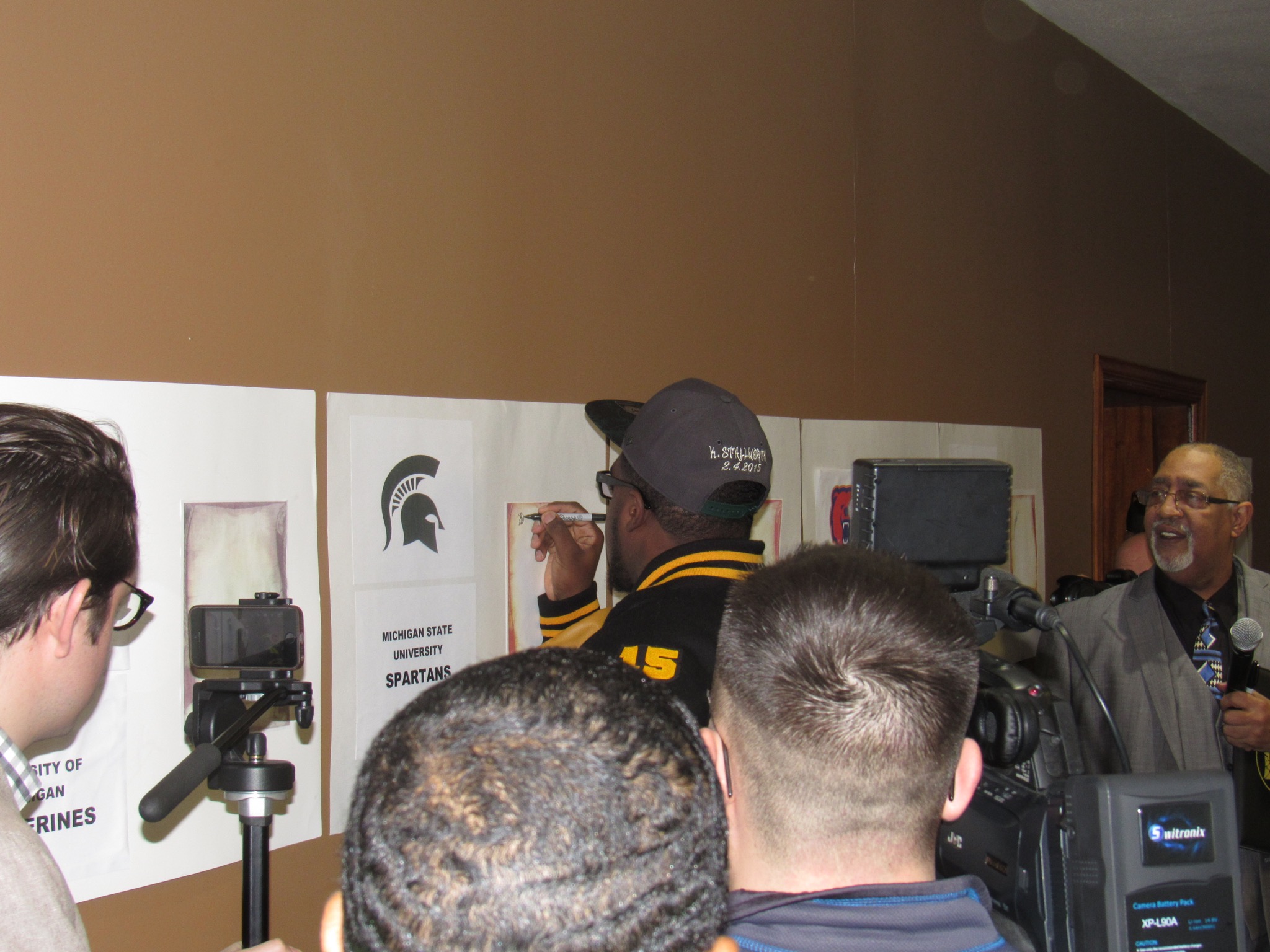 The perennial powers did not disappoint with Renaissance and King having six players commit while the reigning city champ Cass Tech had an astounding thirteen players inking letters of intent. The combatants in the City Championship game were united with their top tier players joining each other in college. King’s Tyriq Thompson (early enrollee) and Kyonta Stallworth will be donning the green and white of the Michigan State Spartans. Mike Weber had the the crowd on pins and needles until he reveled he would be joining teammate Joshua Alabi in Columbus with the National Champions, Ohio State Buckeyes.