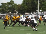 The defense ruled the remainder of the 4th quarter through a barrage of sacks, tackles and pass deflections….sending the game into overtime. During the overtime Cass took the ball first and a TD from Rodney Hall was nullified by a holding penalty; the Technicians started going in the opposite direction. Their attempt at a field-goal came up short and this is when things really got interesting. Martell Pettaway got the Crusaders close to a score, but a short run and a fumbled snap put the game in the foot of the most unrecognizable Crusader on the field, Anwar Miah. The senior kicker from Bangladesh almost didn’t suit up for the game due to disciplinary issues, but at the urging of team captains he was allowed to take the field with his teammates. With one 18-yard field-goal from the left hash, he went from anonymity to Crusader legend.