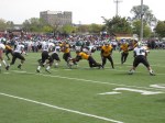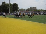 The game started off fast and furious and the energy didn’t break until the final whistle. There were no stars in the sky midday in Detroit, but they were definitely shinning on the field. The Technicians got off to a fast start putting King in a 14-0 hole with scores by QB Rodney Hall and Donovan Johnson, both on the ground. Martell Pettaway got the Crusaders on the board with a short TD run but definitely a catalyst to his most productive day donning the Black and Gold. Donnie Corley invoked his will against Cass with another impressive interception and followed it with a TD reception to tie the game at 14, that is how the game stayed until the half.
